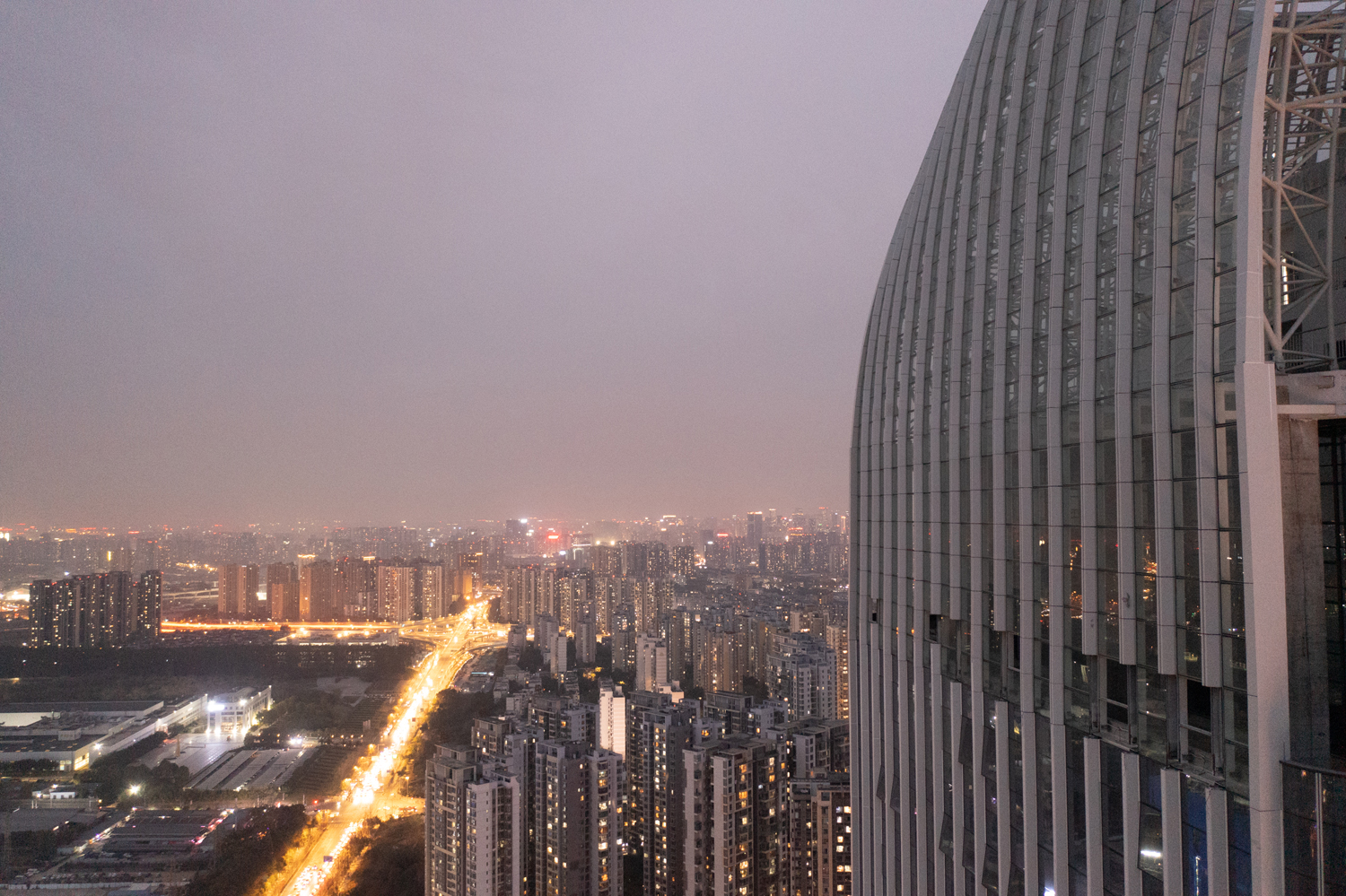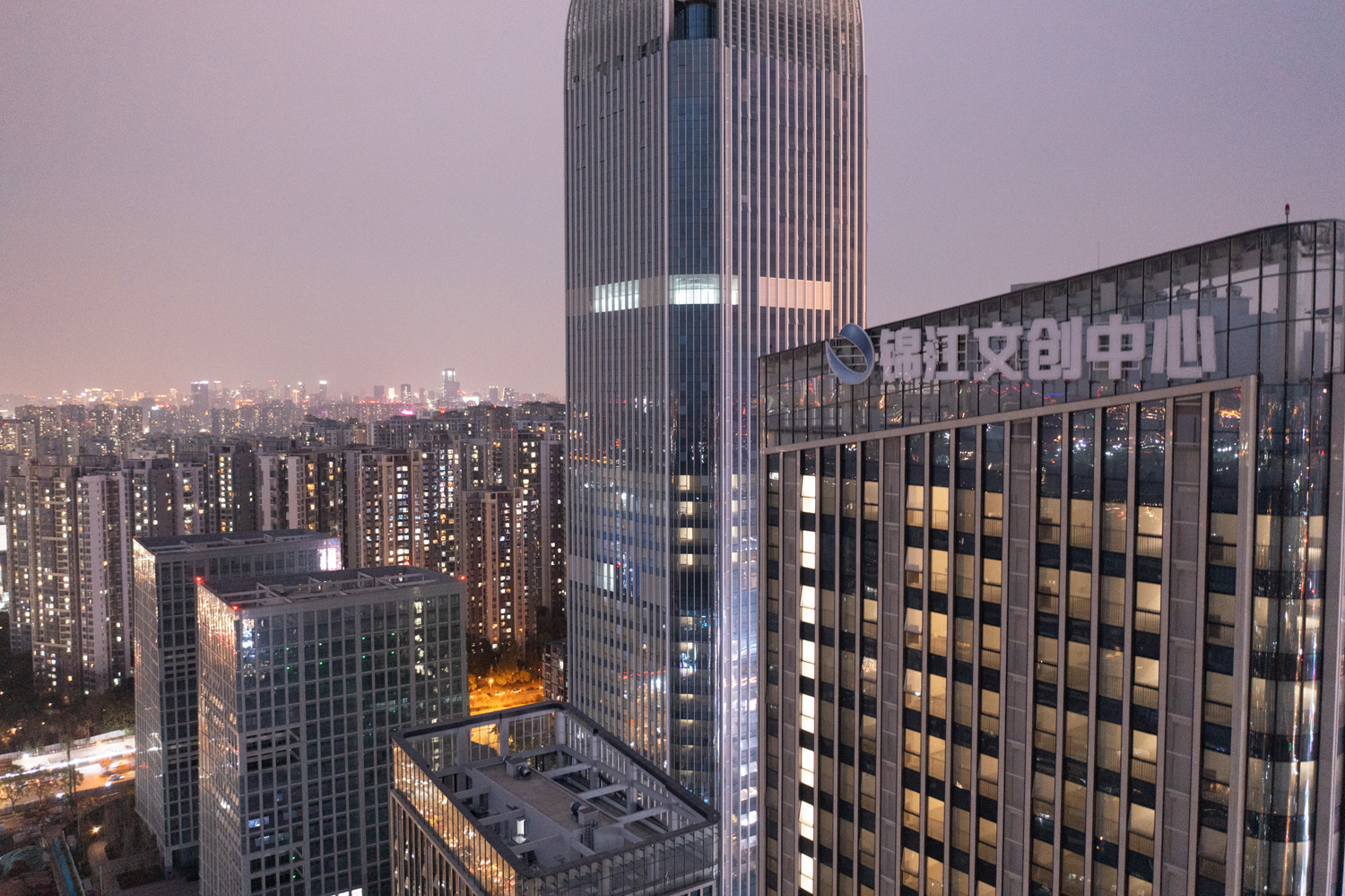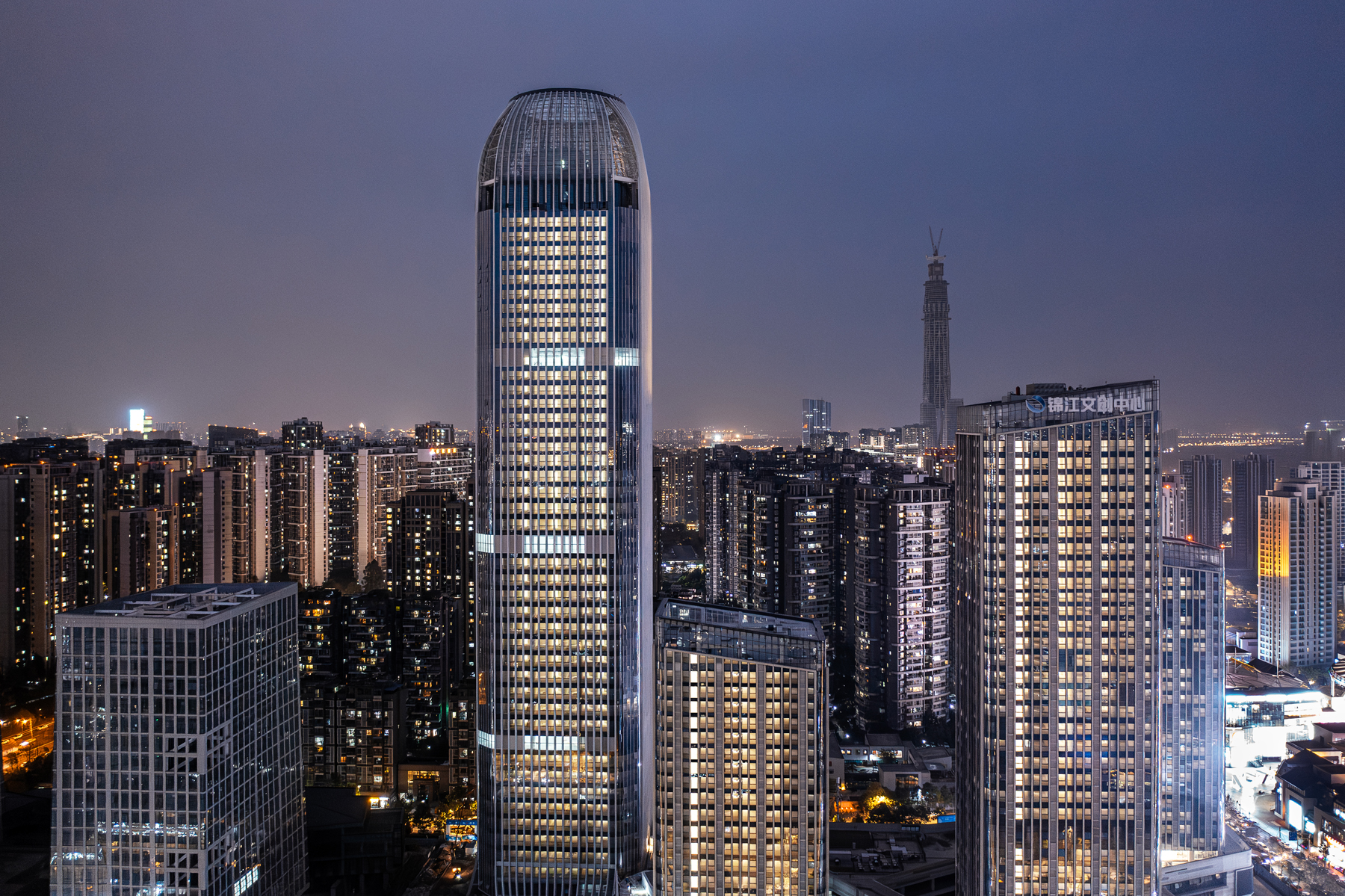 项目建设用地位于成都市三环外东南方,驿都大道与成龙大道之间的东部发展片区——成都重要的旅游休闲地块三圣乡片区,隶属于成都市锦江区,用地性质为商业服务业设施用地。项目用地位于锦江区东洪路以东、栀子街以南、喜树街以西、成龙大道以北。场址地理位置优越,交通便利,水、电、路、通讯等配套基础设施较为齐全,建设条件齐备。项目包括超高层办公和多层街区,总建筑面积237,900平方米,其中地上184,192平方米,两层地下室,超高层塔楼共计60层,建筑高度258.25米,多层街区包含媒体中心、展示中心和体验中心等,共计4层,建筑高度20.65米。项目各个功能区通过立体连廊相互联系,有效对接。